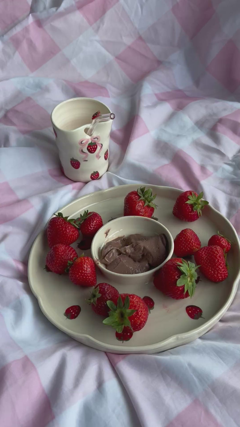 This high-fired stoneware chip & dip platter is lovingly handmade and hand-painted, making each piece truly one of a kind.